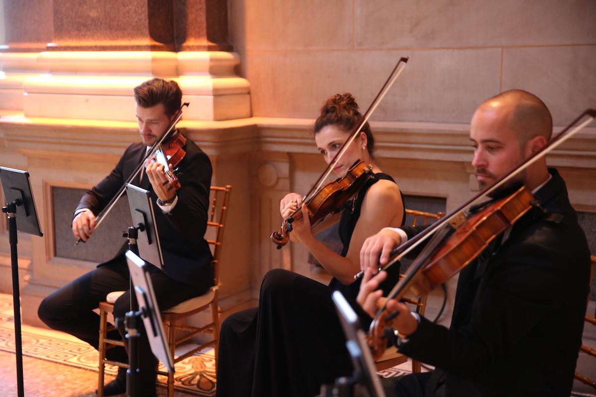 Alongside the quartet, the string trio is one of our most requested ensembles. A trio usually consists of two violins and a cello, or one violin, viola, and cello, though we can accommodate special requests — such as substituting a flutist for a violinist.